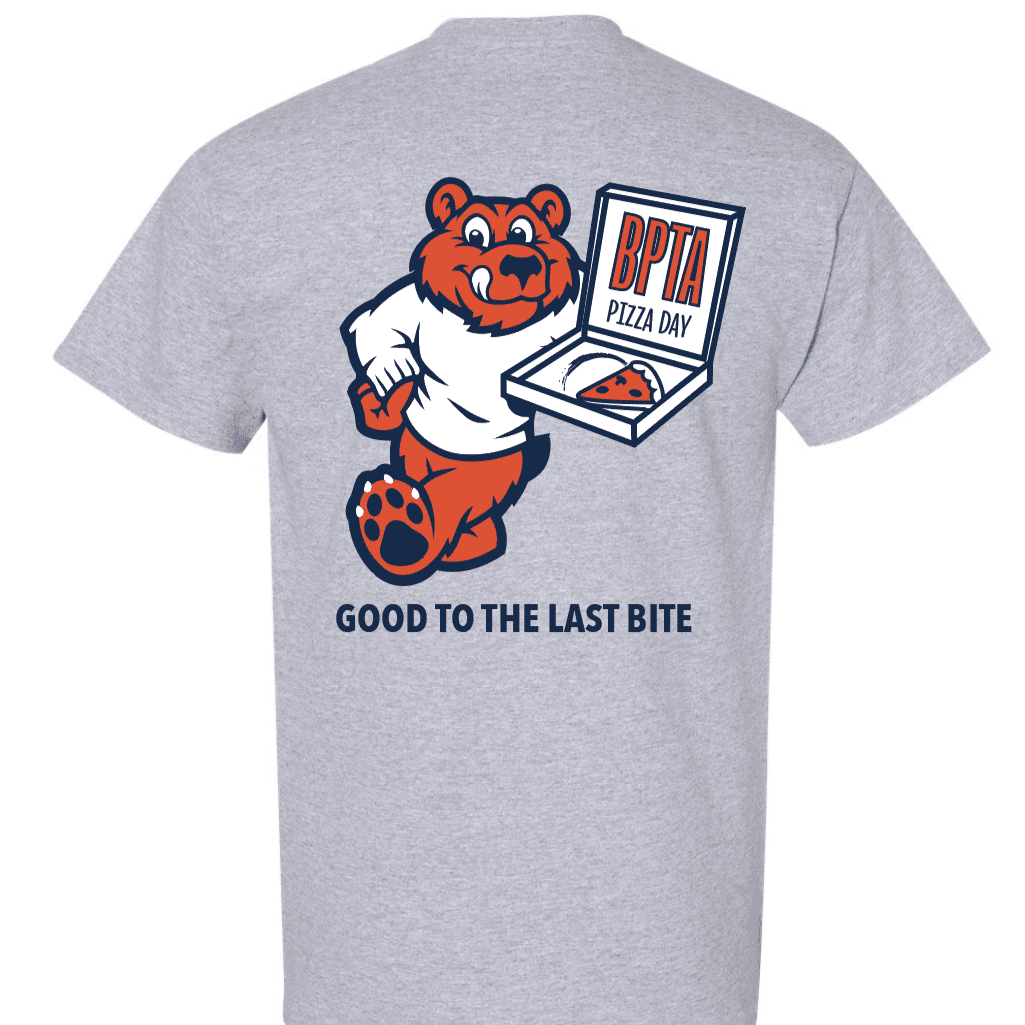 Celebrate the end of an era with this limited edition T-shirt commemorating the last BPTA Pizza Days at Todd Elementary and Briarcliff Middle School. The design features custom graphics on both the front and back on a light grey t-shirt.